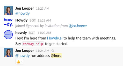 If you haven’t tried Howdy’s amazing trainable Slack bot for managing a distributed team’s interactions, I highly recommend it!