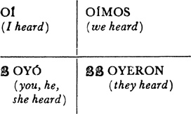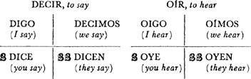 Oír, present tense, 31.1; past (preterite) tense, 31.2