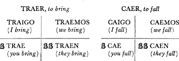 Caer, present tense, 31.1; past (preterite) tense, 31.2