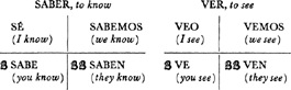 Saber, present tense, 31.1; past (preterite) tense, 31.2; used in the imperfect tense, 31.3, 31.4; uses of, 36.1; exercises using, 36.2, 36.3