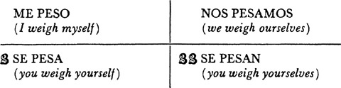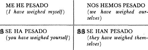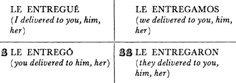 Pronouns, subject, 29.1; direct object pronouns, 32.1, 33.1, 33.2; exercises using, 32.2, 33.3; indirect object pronouns, 34.1, 35.1, 36.1; exercises using, 34.2, 34.3, 35.2; direct and indirect object pronouns combined, 35.3, 35.4; possessive pronouns, 45.1, 45.2; reflexive pronouns, 38.1; pronouns used in the command, 40.1; pronouns used in intimate form of address, 45.3