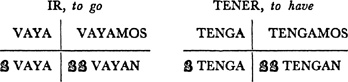 Spelling, basic differences between Spanish and English, 1.1, 1.2, 7.1; spelling changes in verbs (orthographic), 28.1