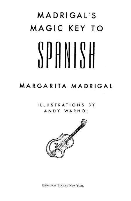 Madrigal’s Magic Key to Spanish. Copyright © 1951, 1953, 1989 by Margarita Madrigal. All rights reserved. Printed in the United States of America. No part of this book may be reproduced or transmitted in any form or by any means, electronic or mechanical, including photocopying, recording, or by any information storage and retrieval system, without written permission from the publisher. For information, address: Broadway Books, a division of Random House, Inc., 1540 Broadway, New York, NY 10036.
