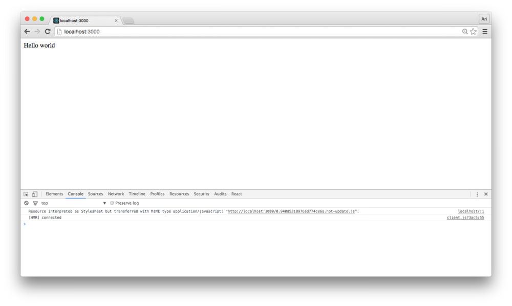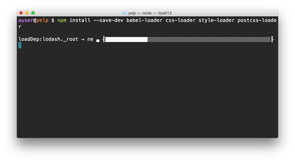 npm install --save-dev hjs-webpack webpackWebpack is a tad useless without any loaders or any configuration set. Let’s go ahead and install a few loaders we’ll need as we build our app, including the babel-loader, css/styles, as well as the the url and file loaders (for font-loading, built-in to hjs-webpack):