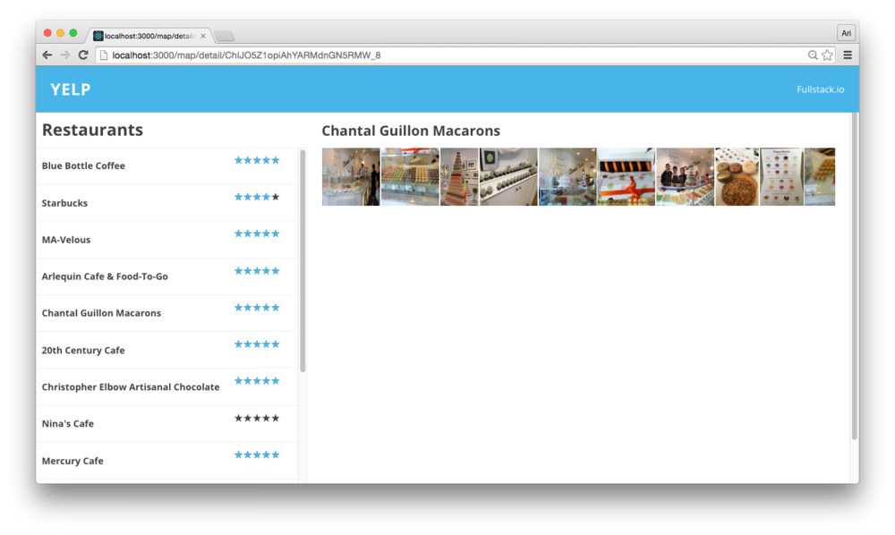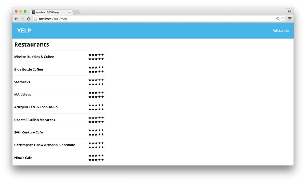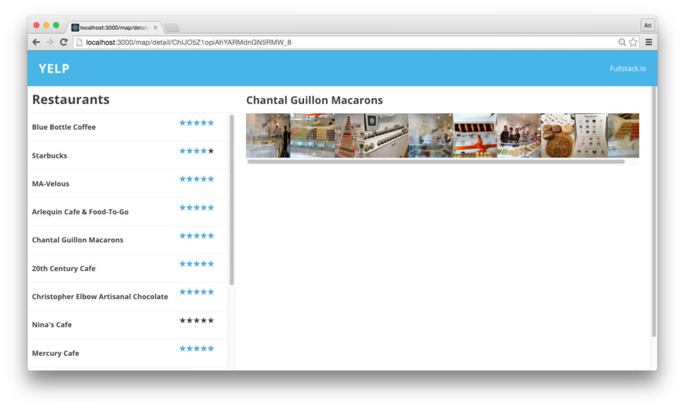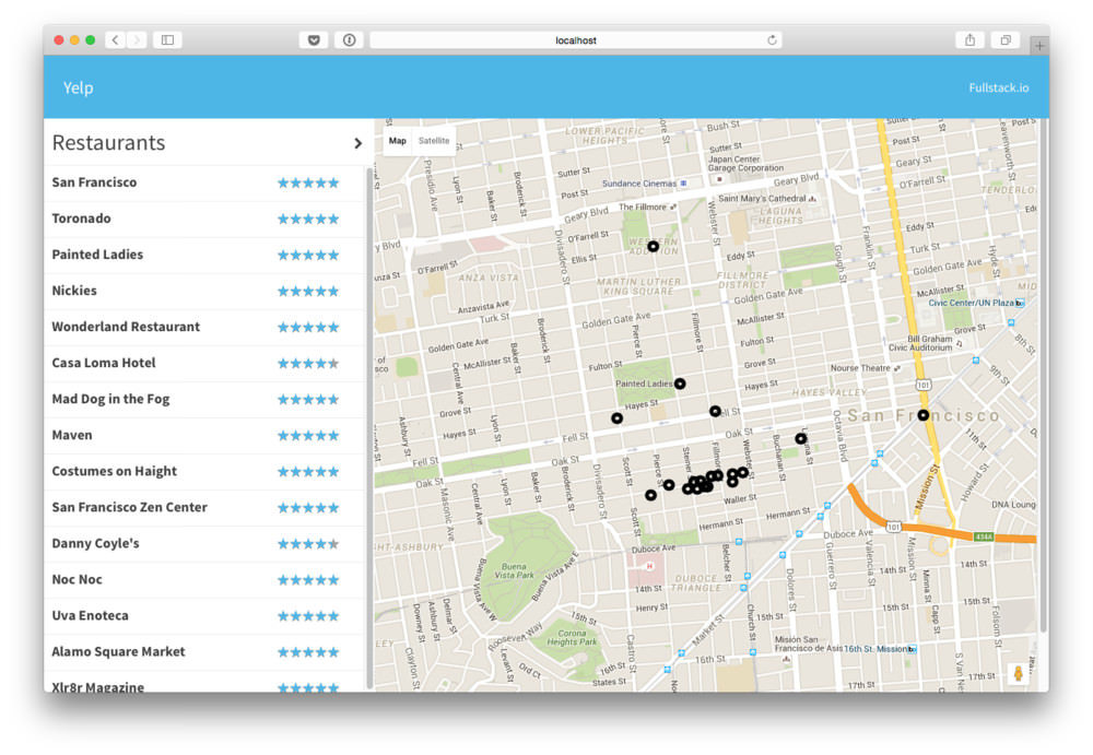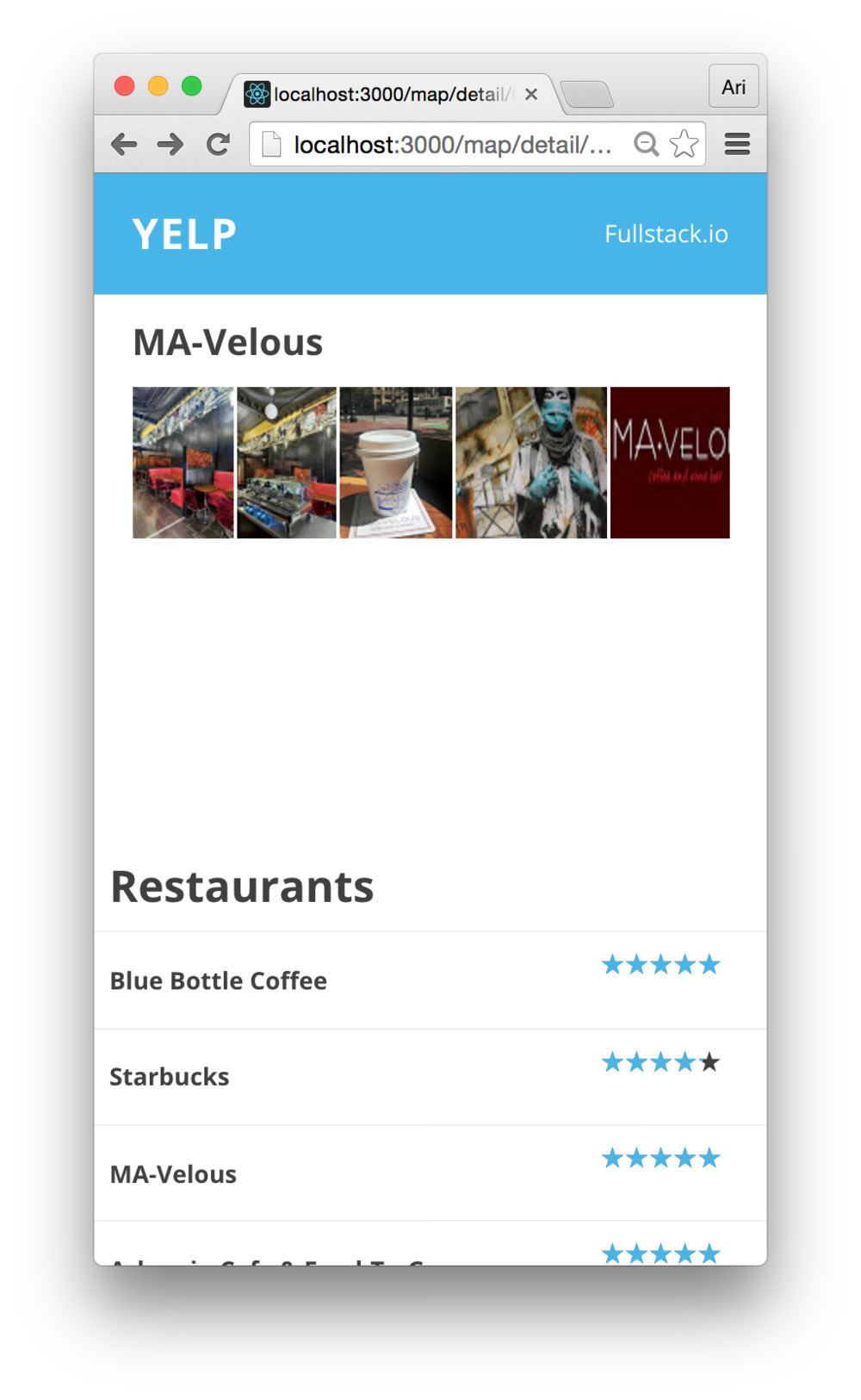 We’ve placed the entire app on github at fullstackreact/yelp-clone.