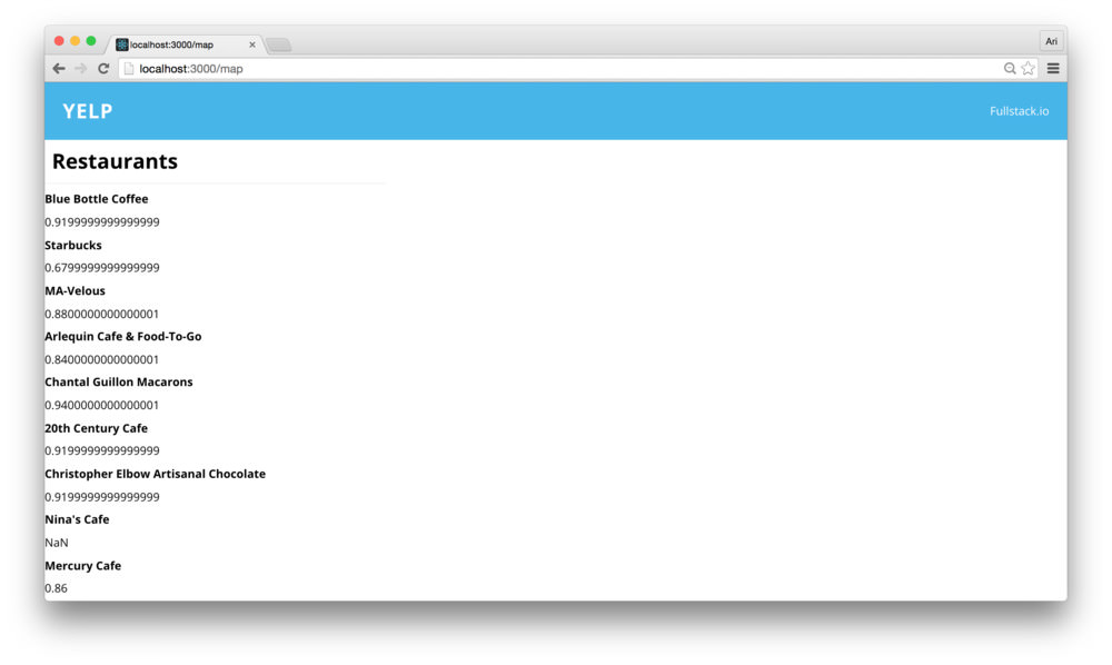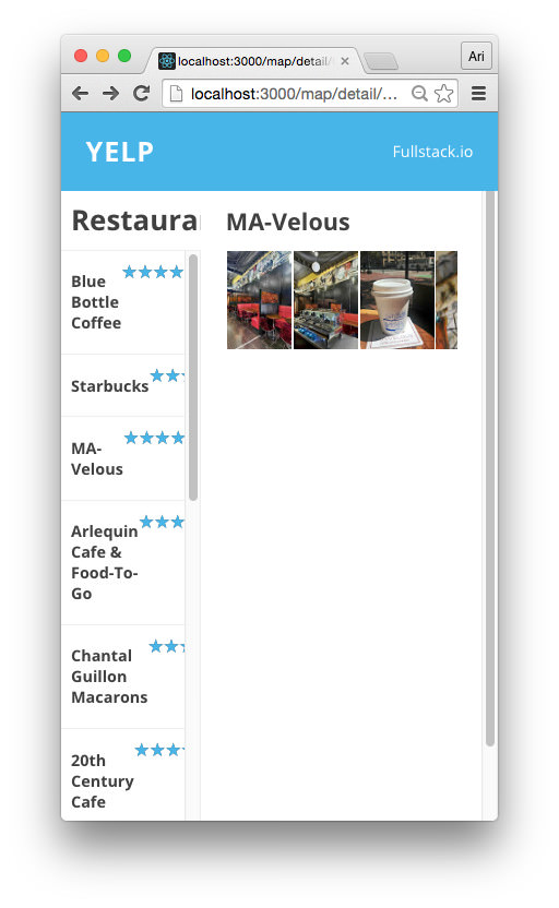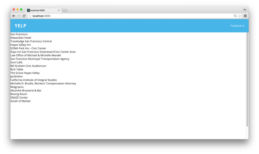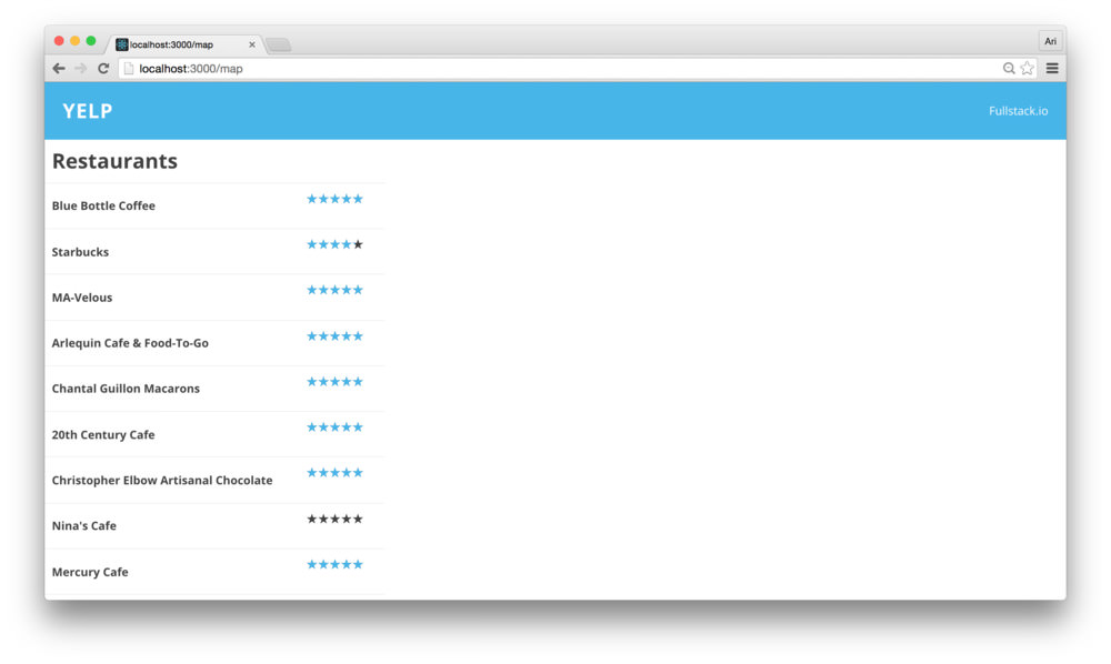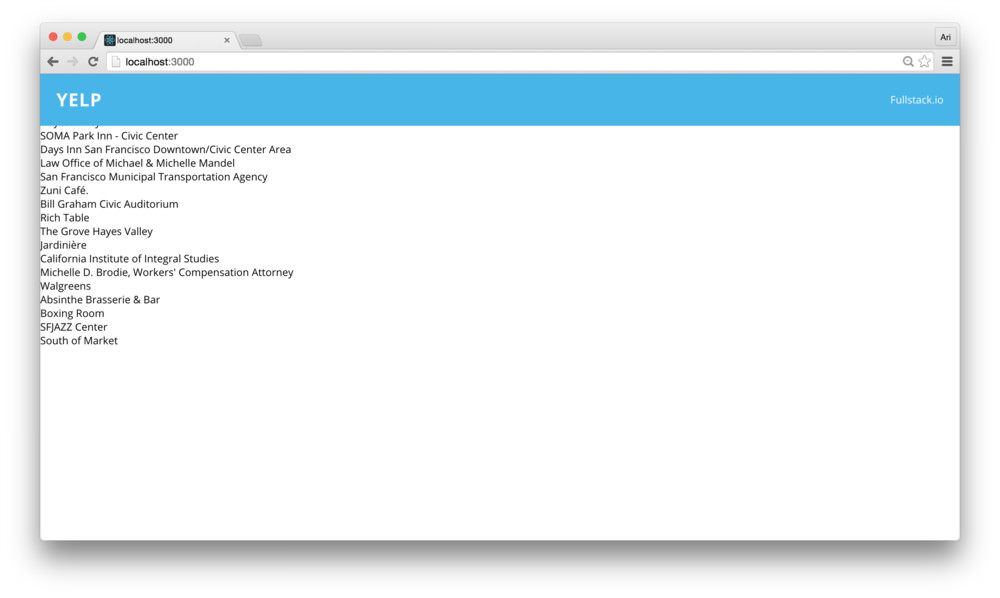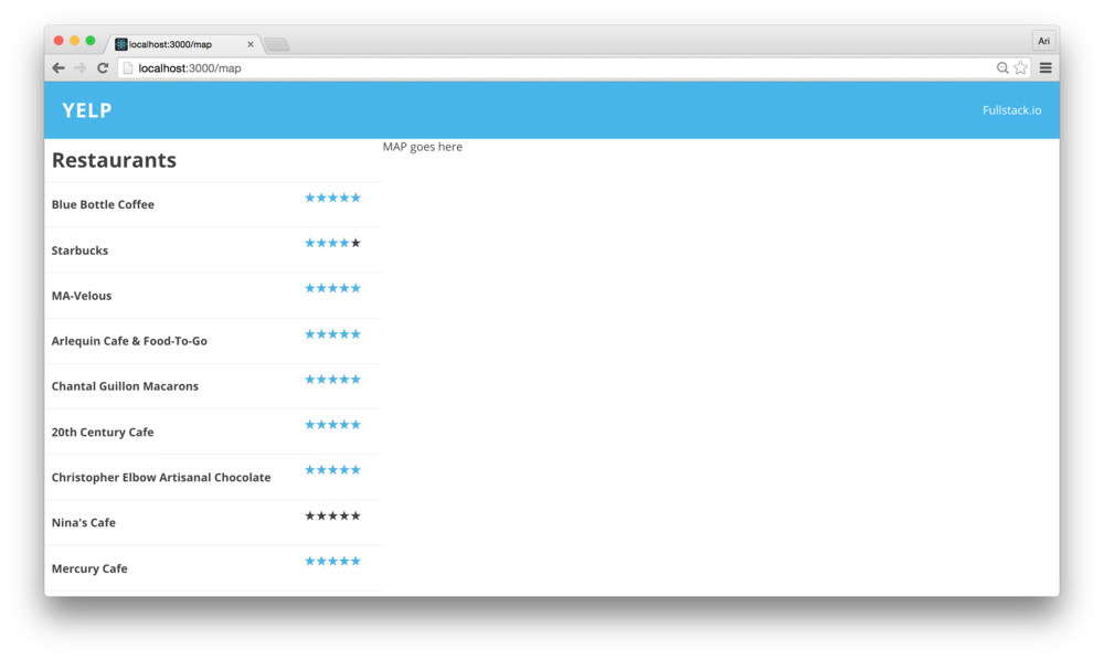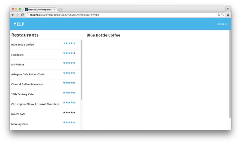 We’ve placed the entire app on github at fullstackreact/yelp-clone.