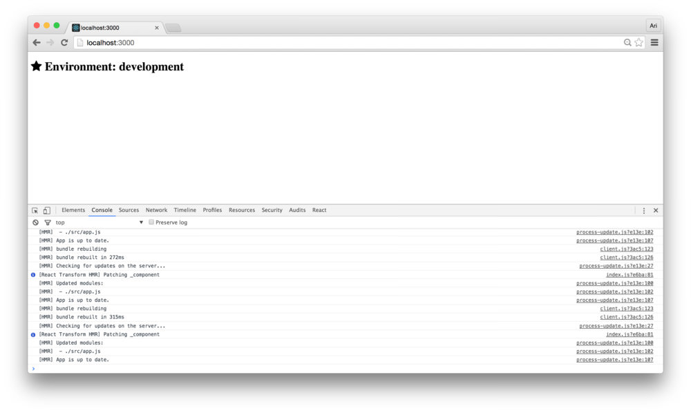 touch .babelrcLet’s include a few presets so we can use react as well as the react hot reloading features:
