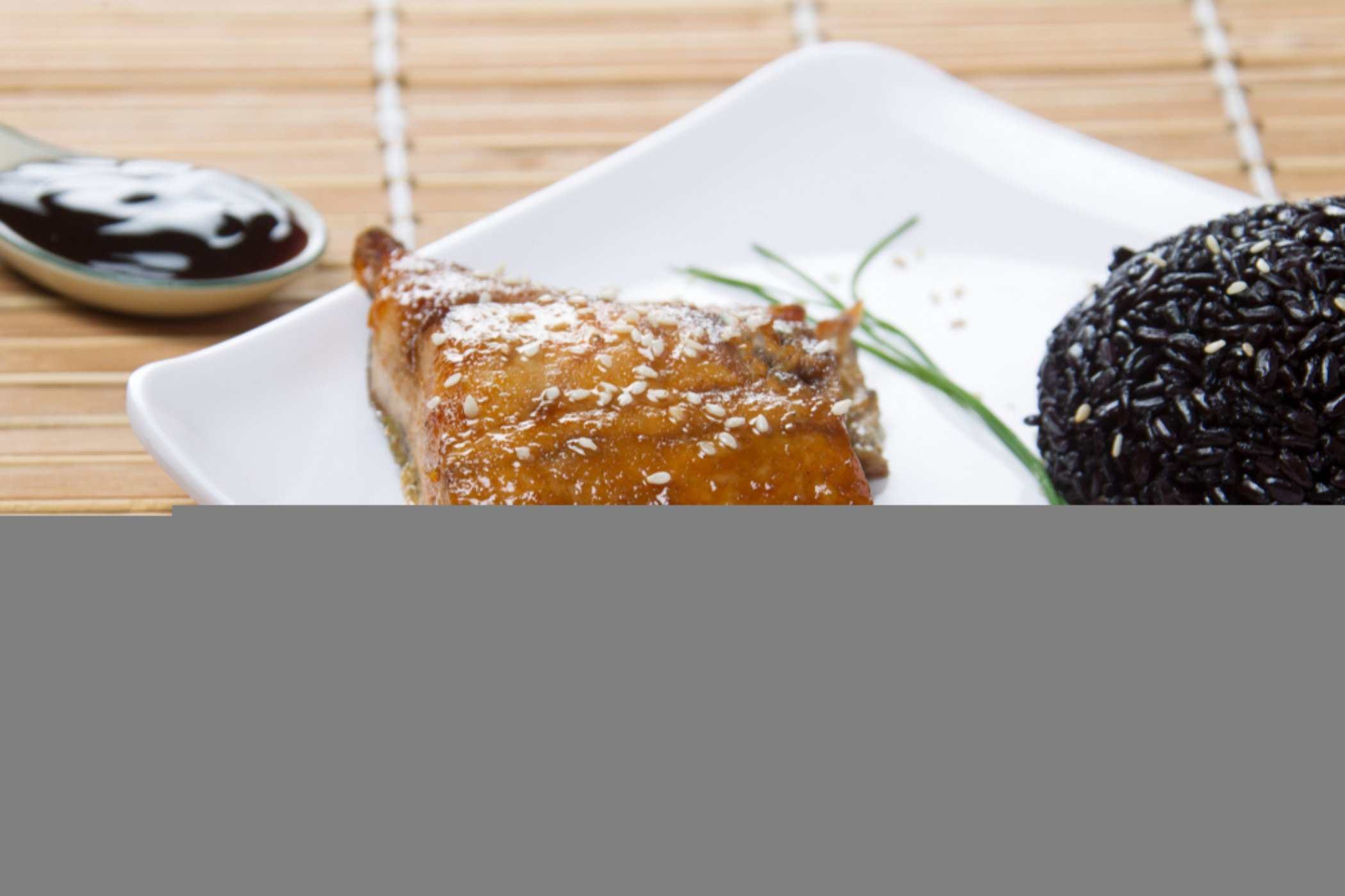 Japanese cuisine: rice, soybeans, and liquid spices.
